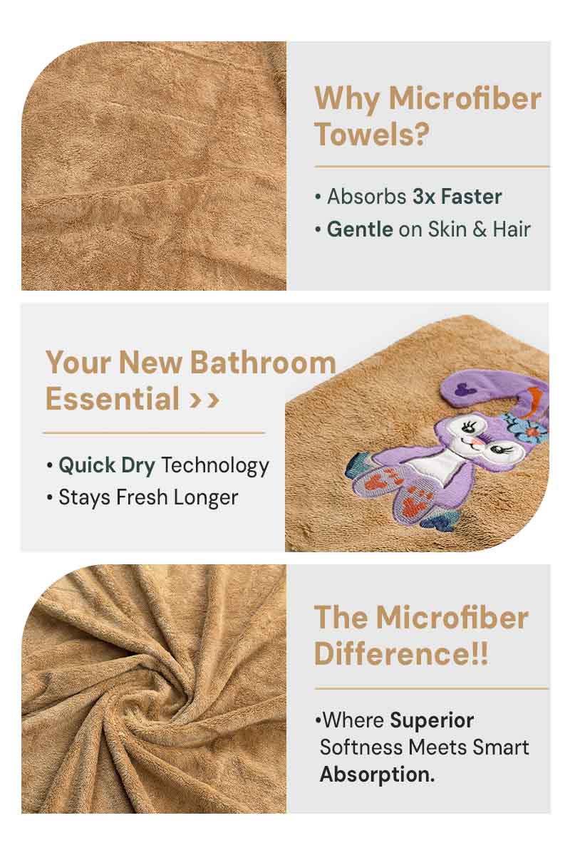 Import Microfiber Plush Towel | Cute Character Design | Brown