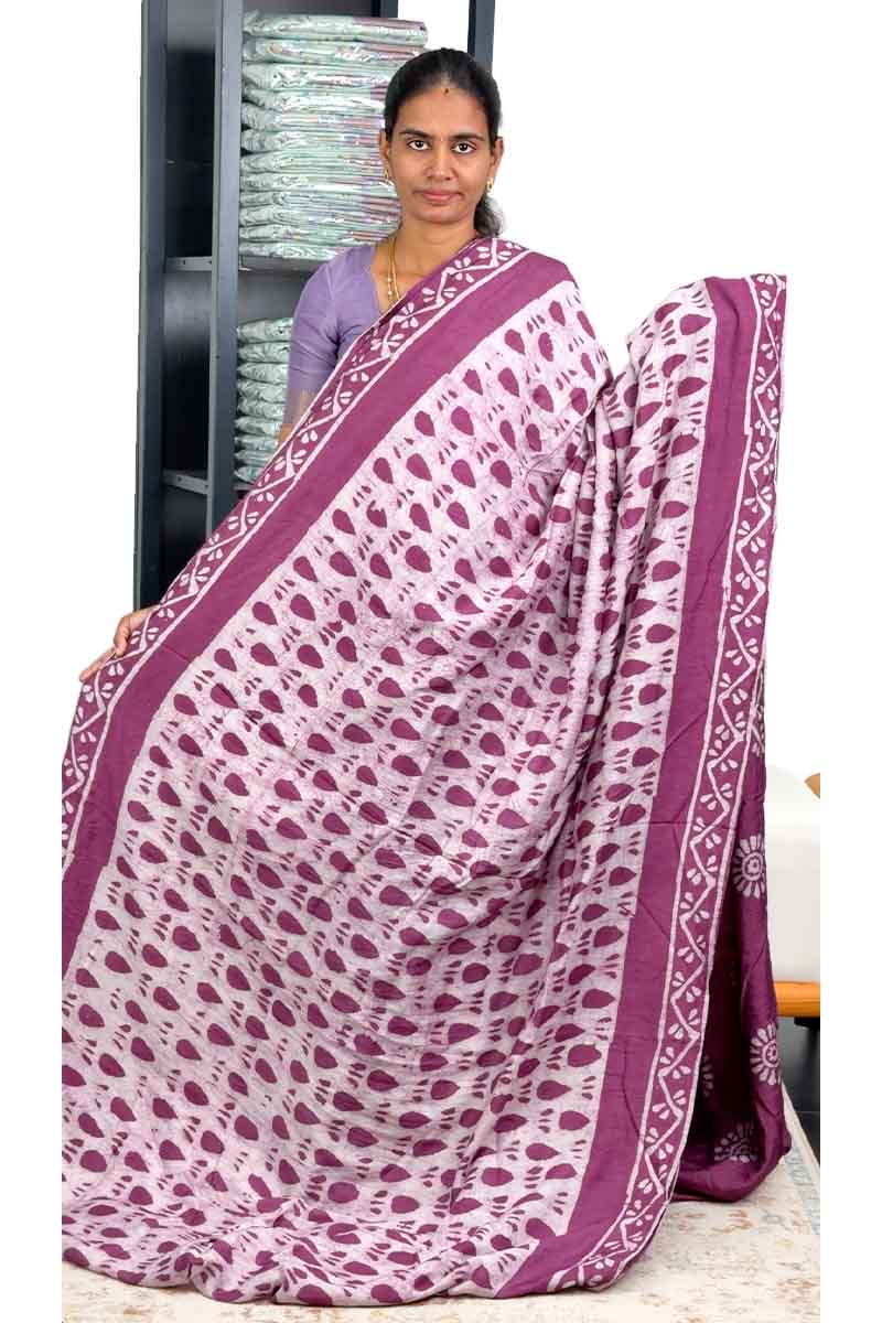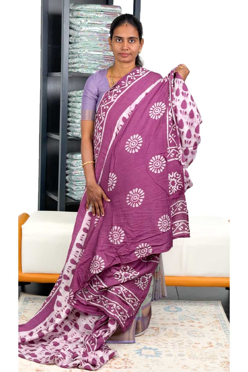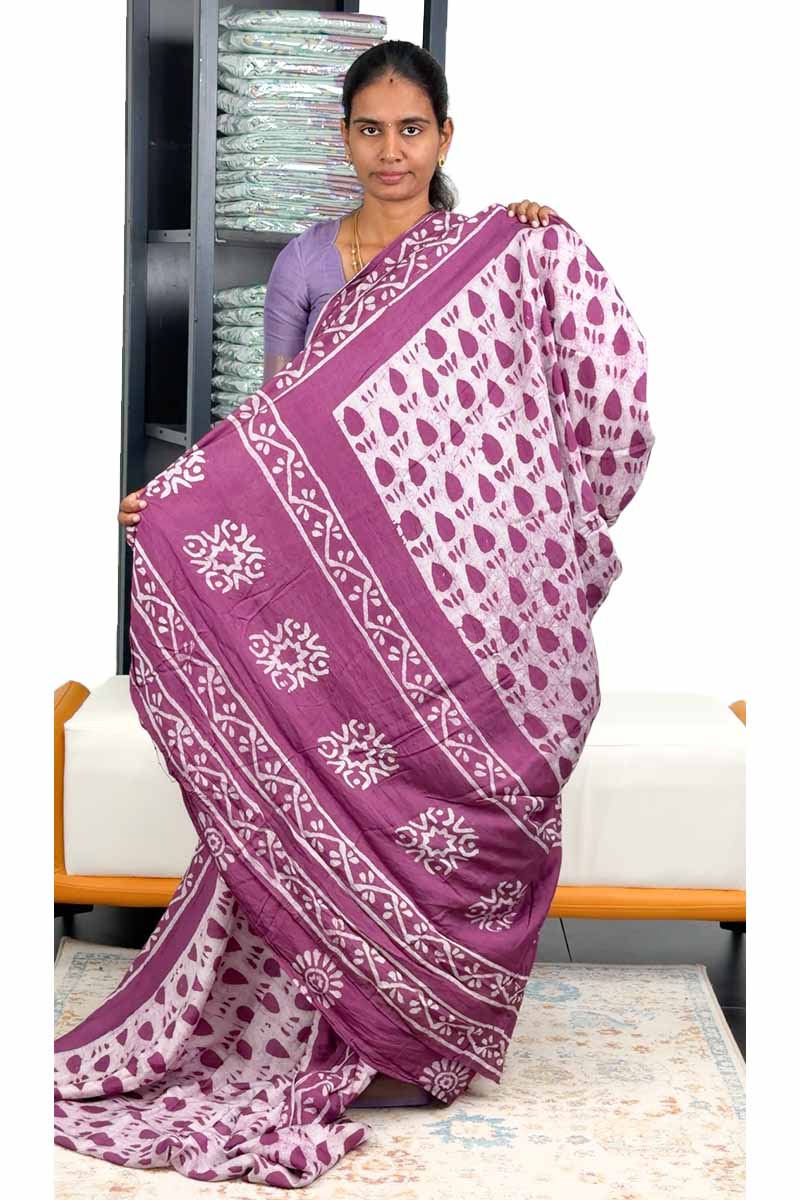 Mul Cotton Saree With Printed Design | Light Eggplant
