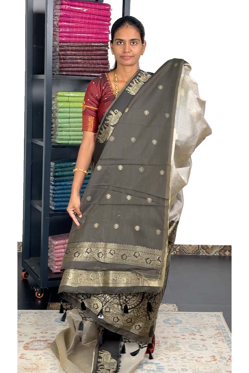 Munga Cotton Saree|Soft Gray and Charcoal