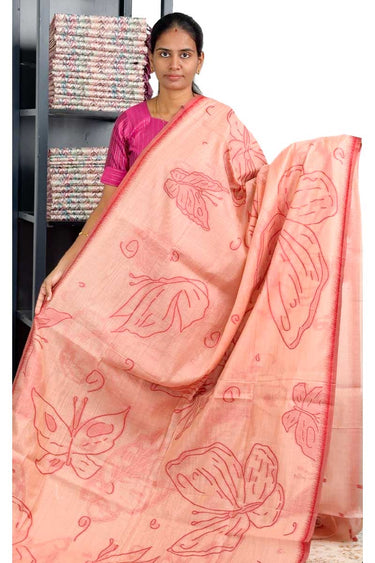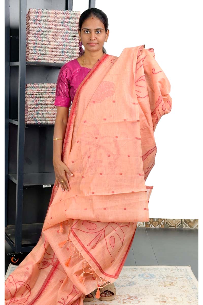 Munga Cotton Saree With Butterfly Weaving | Peach