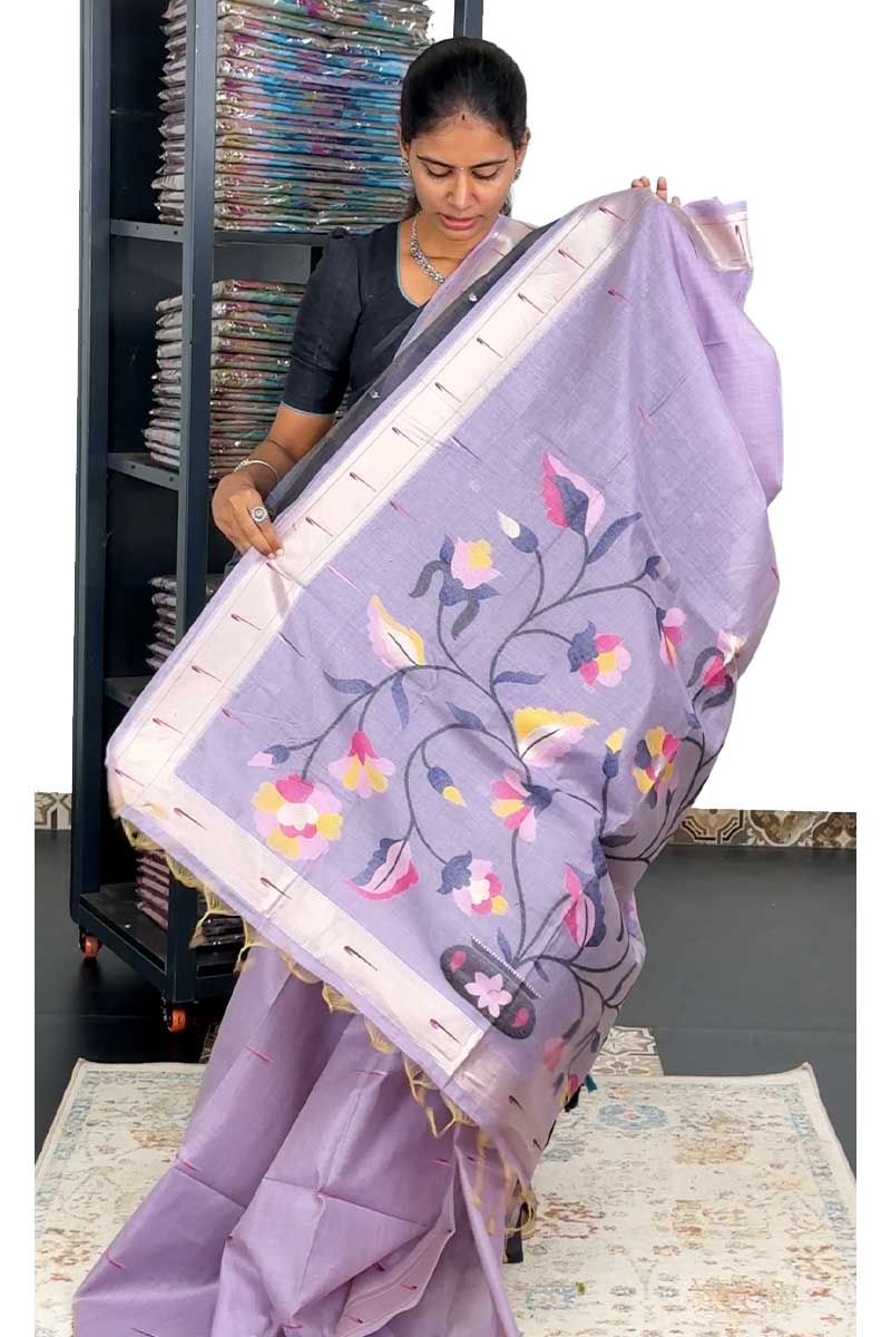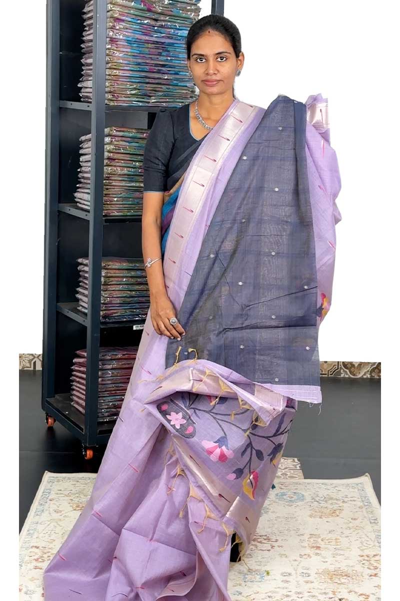 Munga Cotton Saree With Paithani Pattern| Lavender