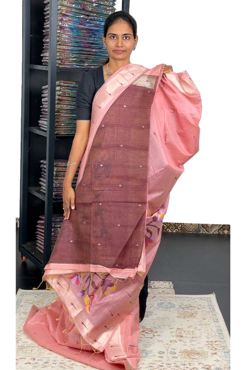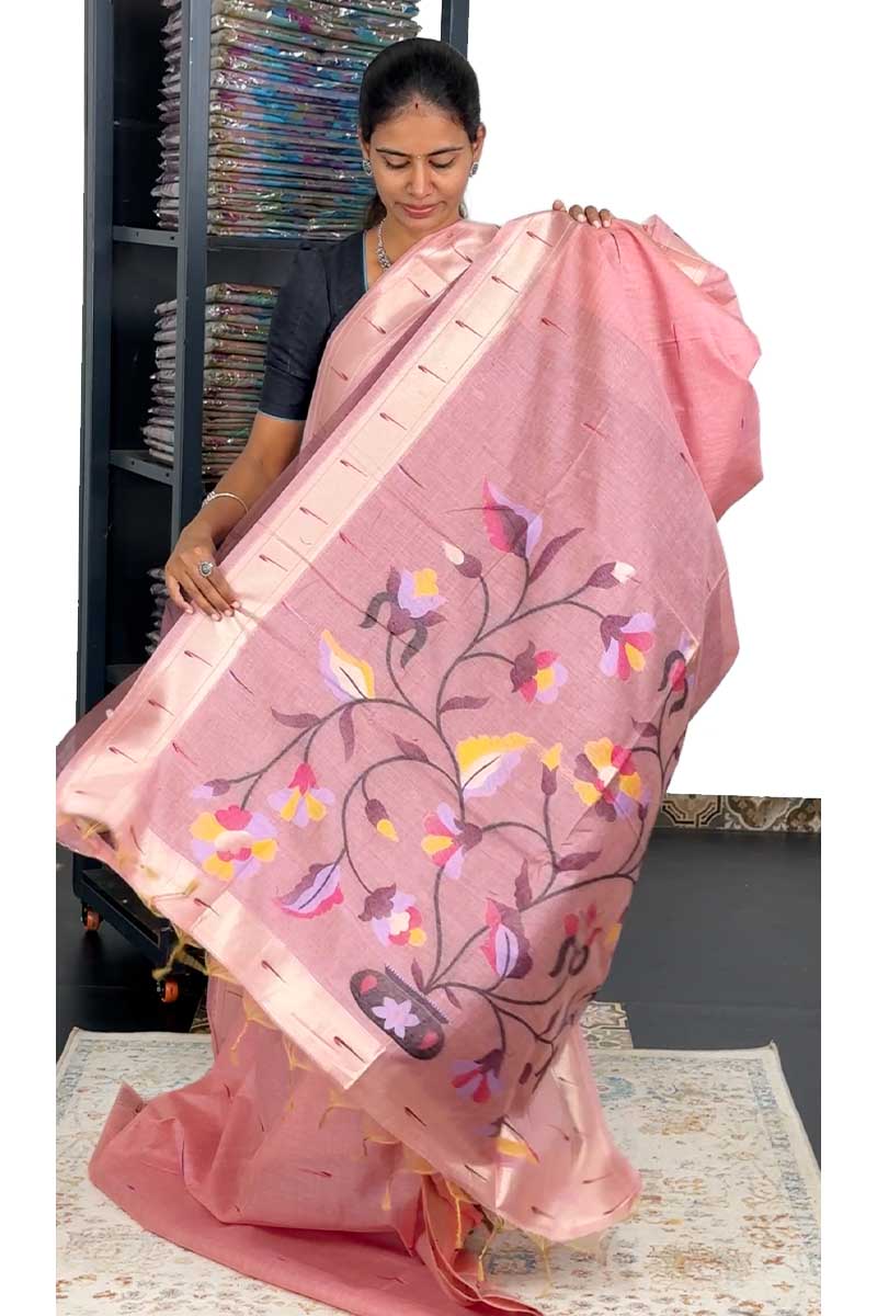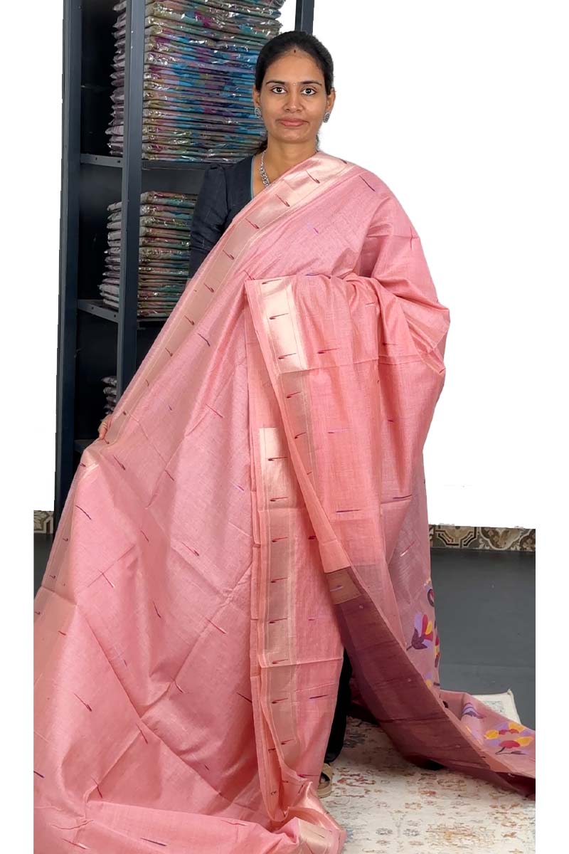 Munga Cotton Saree With Paithani Pattern| Mamey Pink