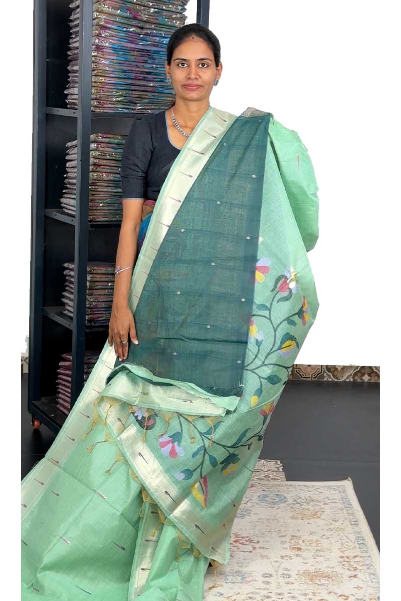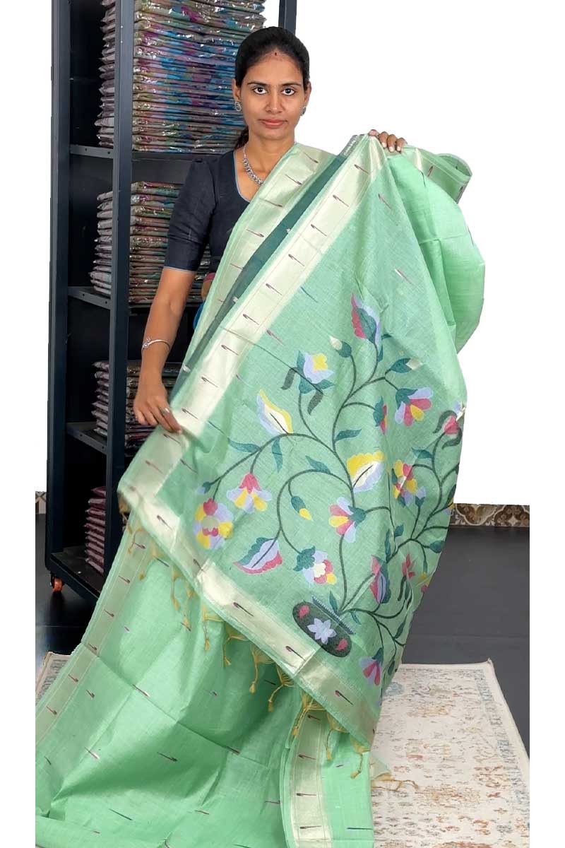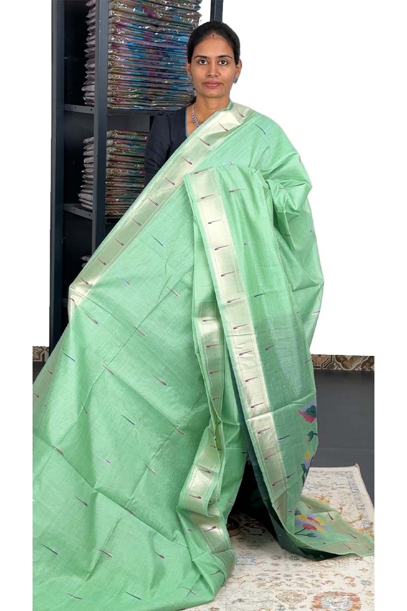 Munga Cotton Saree With Paithani Pattern| Pistacho