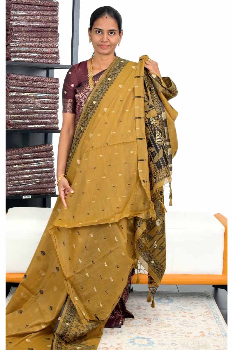 This saree is perfect for festive occasions, intimate gatherings, or daily elegance. Drape it, feel the finesse, and own your unique style with Menmai Fabrics.