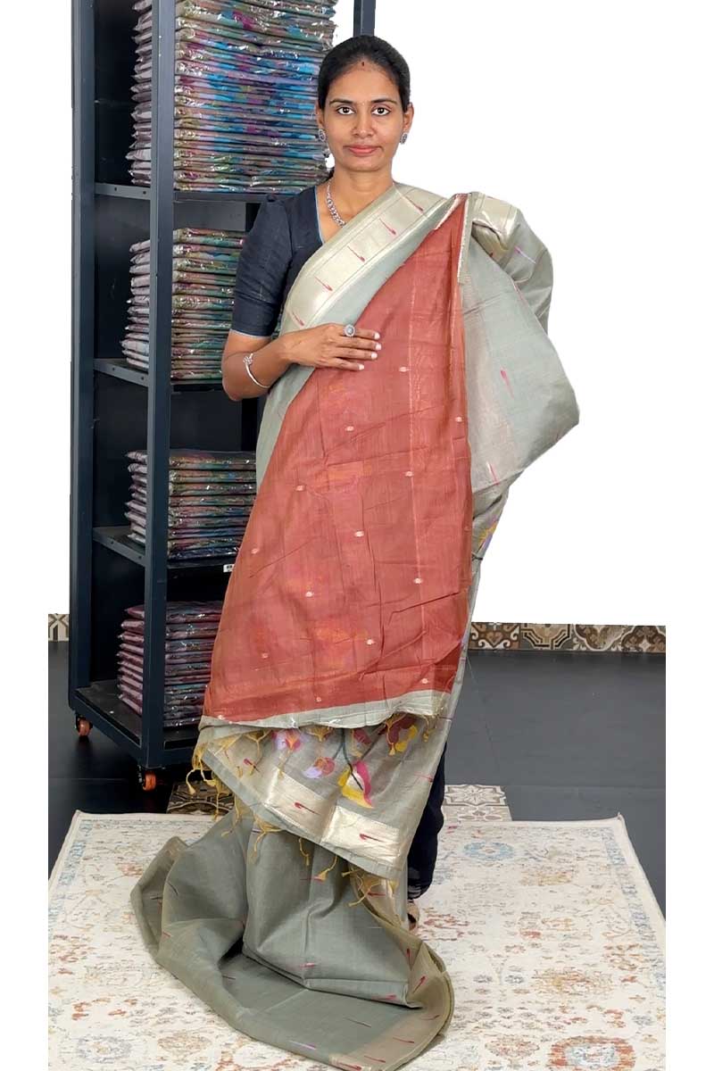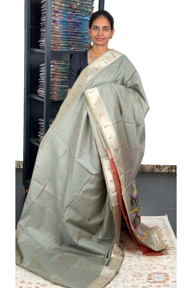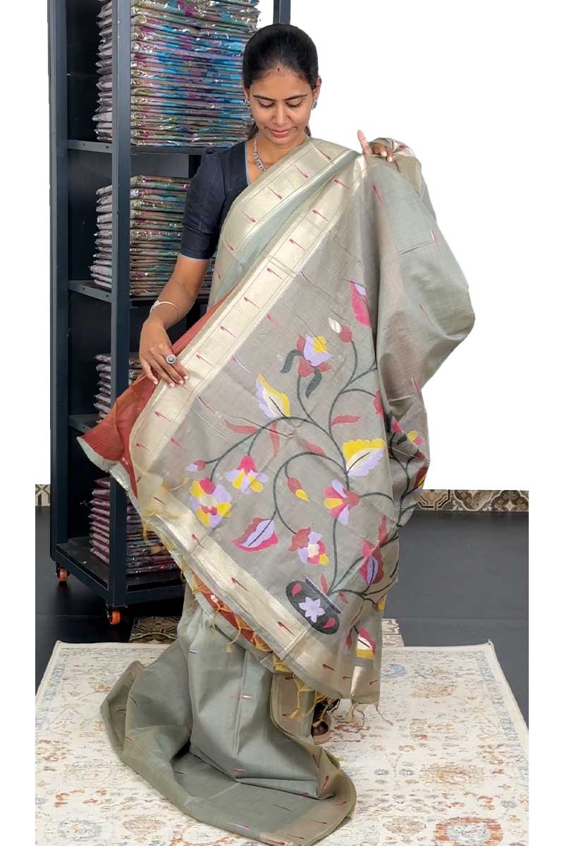 Munga Cotton Saree With Paithani Pattern| Silver Gray