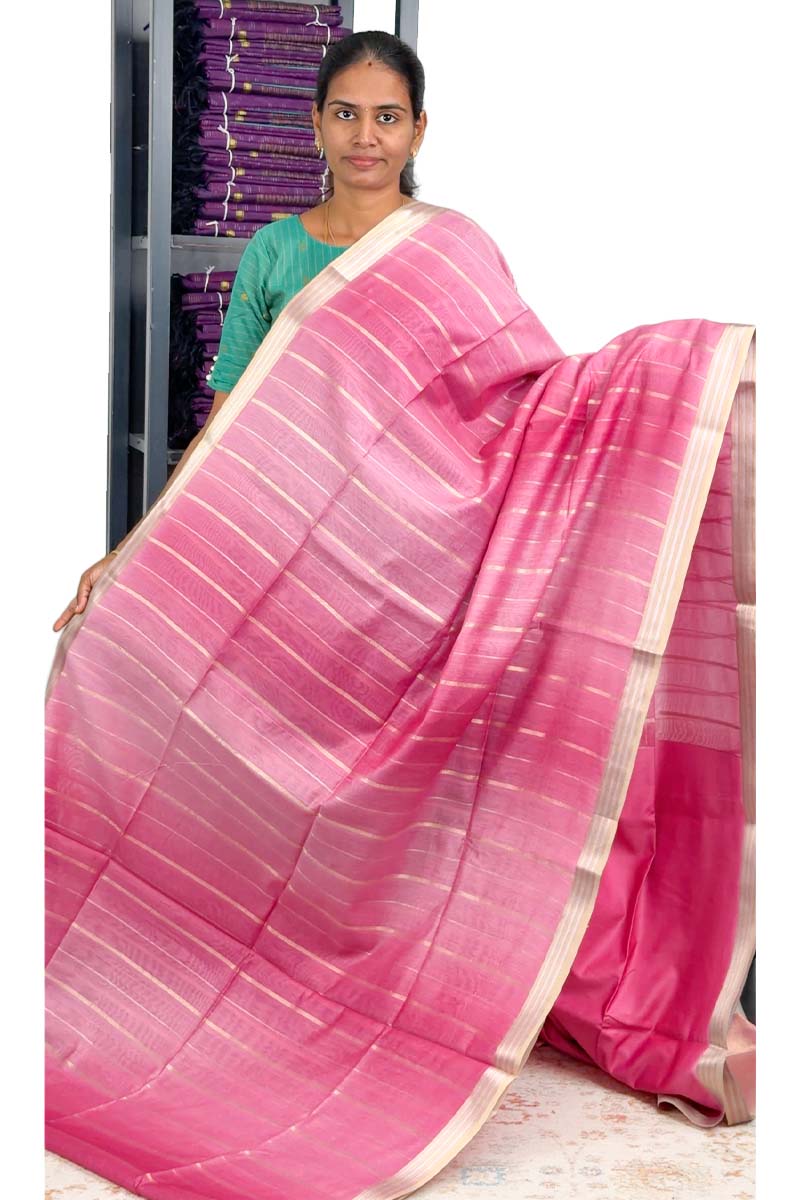 Munga Cotton Saree With Zari Border | French Rose