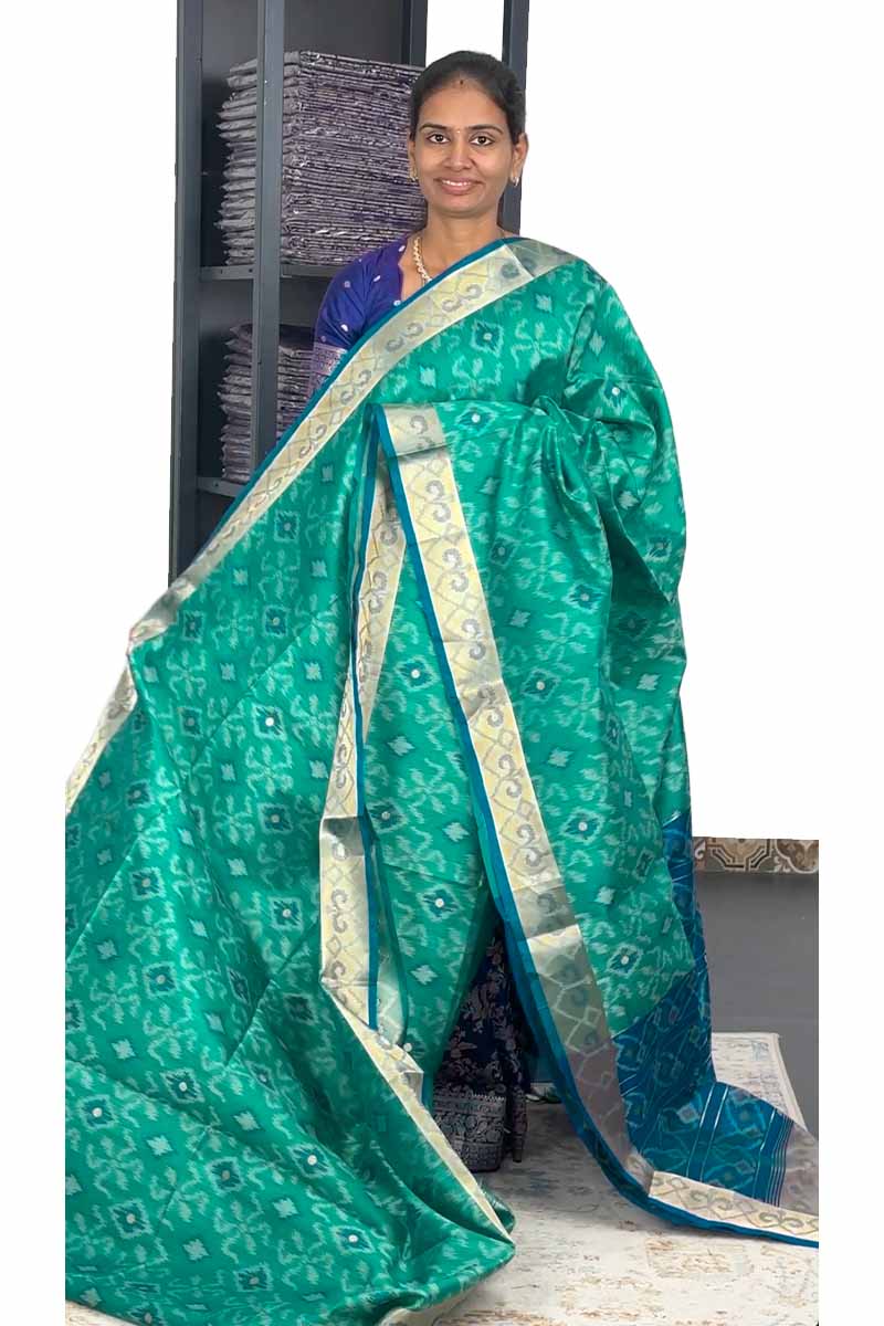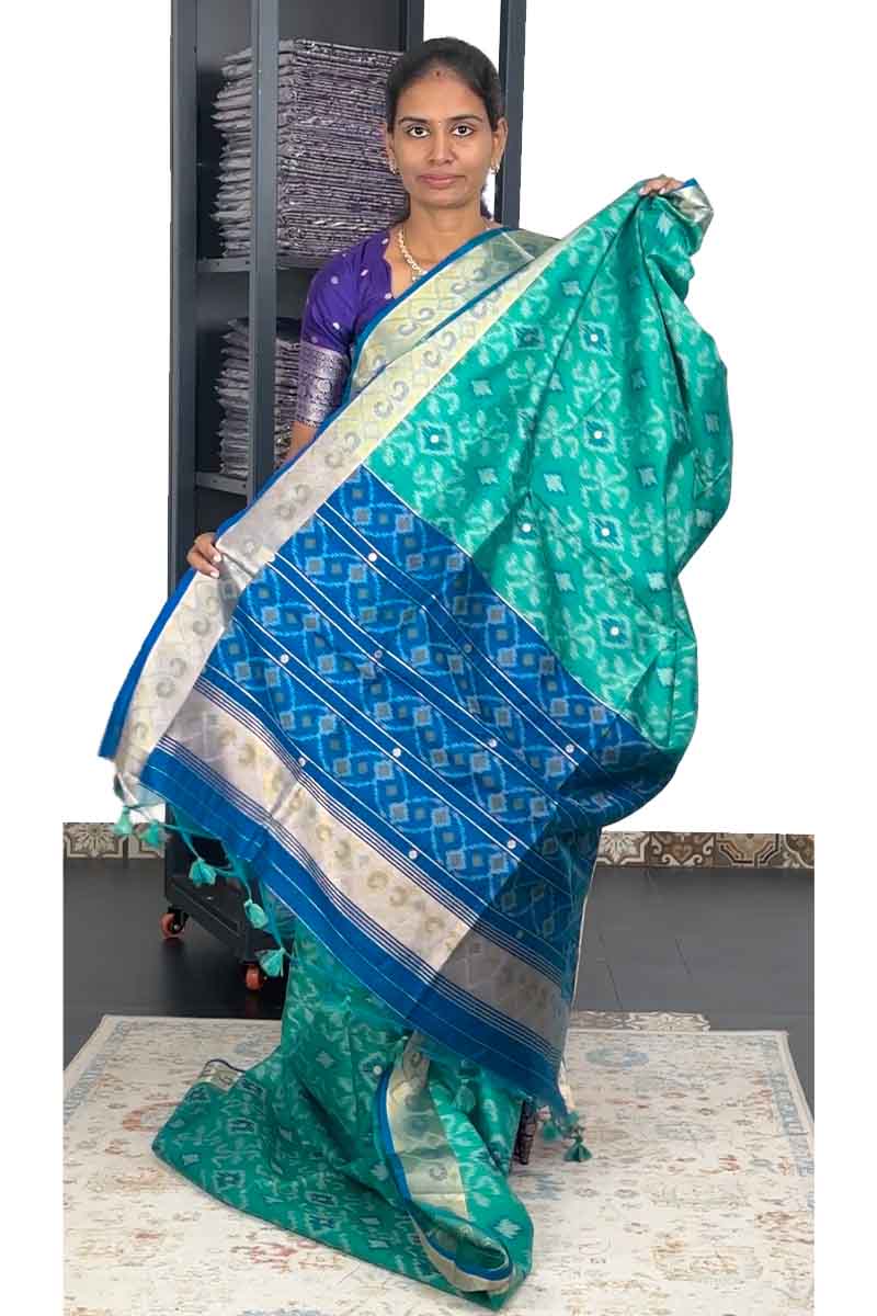 Patola Silk Saree With Ikkat weaving | Aqua Mint and Royal Blue