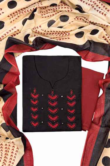 Premium Cotton Salwar Material (Top, Bottom & Dupatta) | Black + Rust