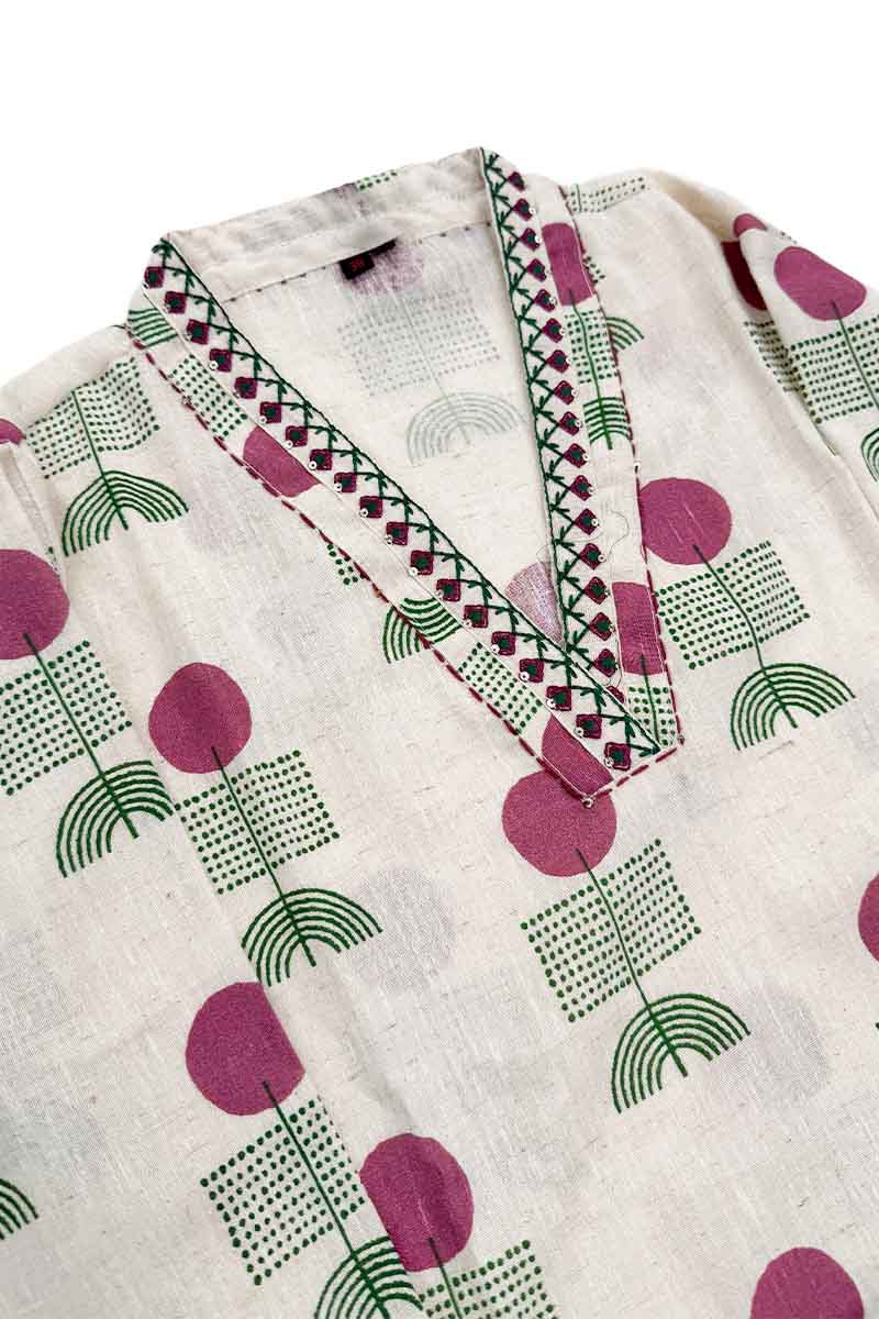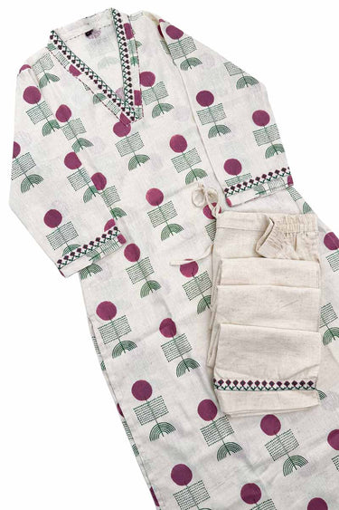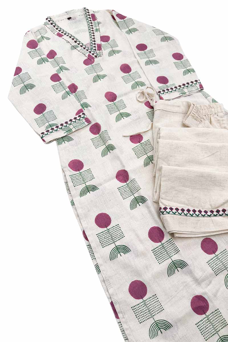 Premium Khadi Cotton Co-ord Stitched Salwar Suit (Top & Bottom) | Off White