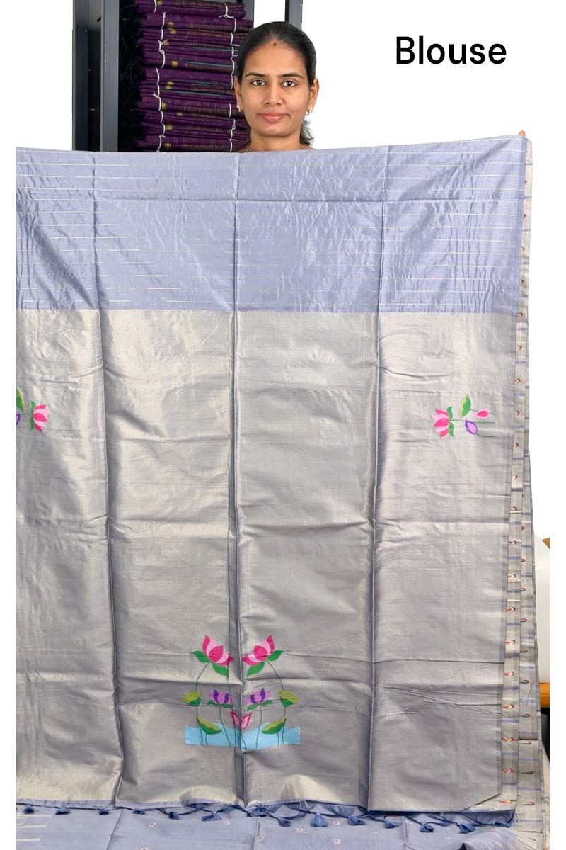 Premium Raw Tussar Silk Saree With Paithani Design | Pastel Lilac