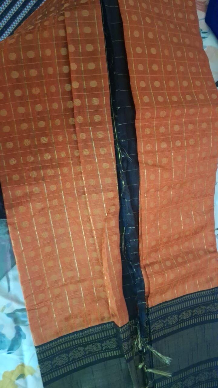 Just arrived ✈️ 🌟 Semi Raw Silk Saree | Marigold Flower + Charcoal 🧡🖤