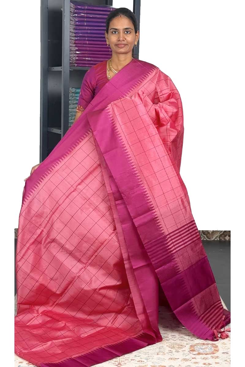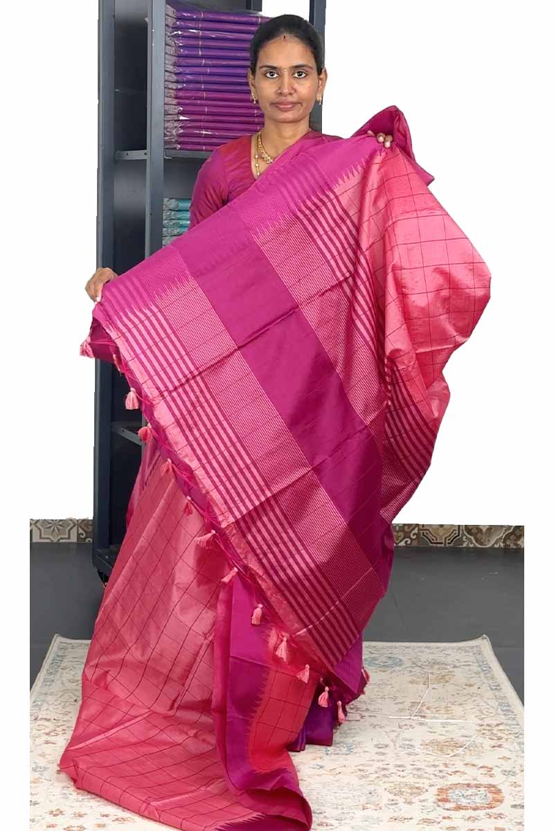 Raw Silk Sarees with Chex Design | Rose + Magenta Pink