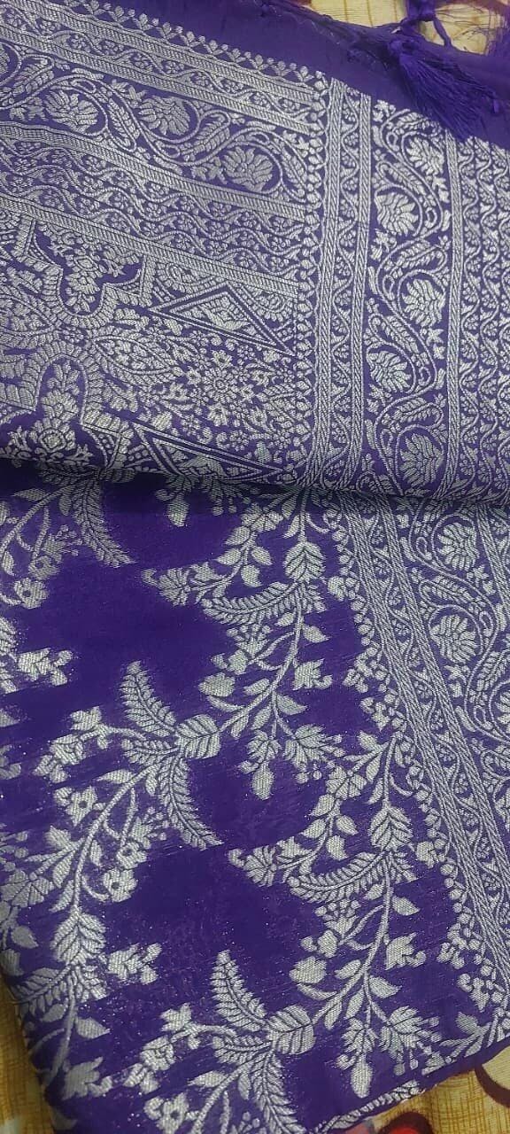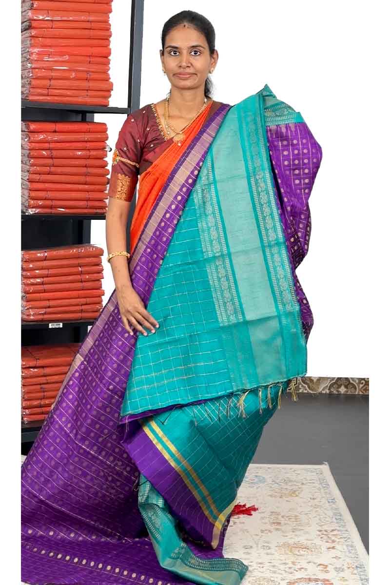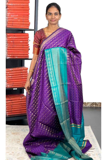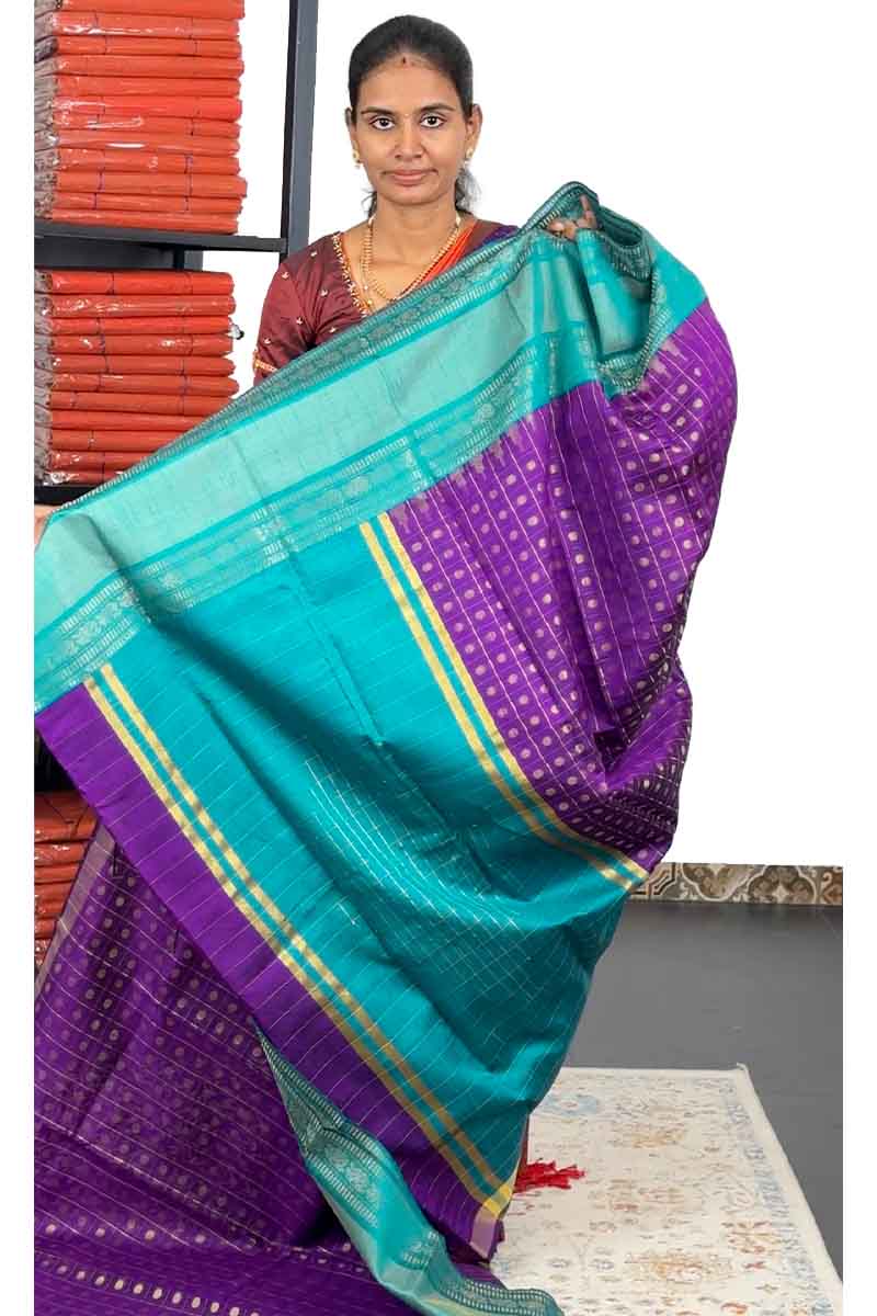 Raw Silk Sarees with Coin Butta | Royal Purple + Teal blue