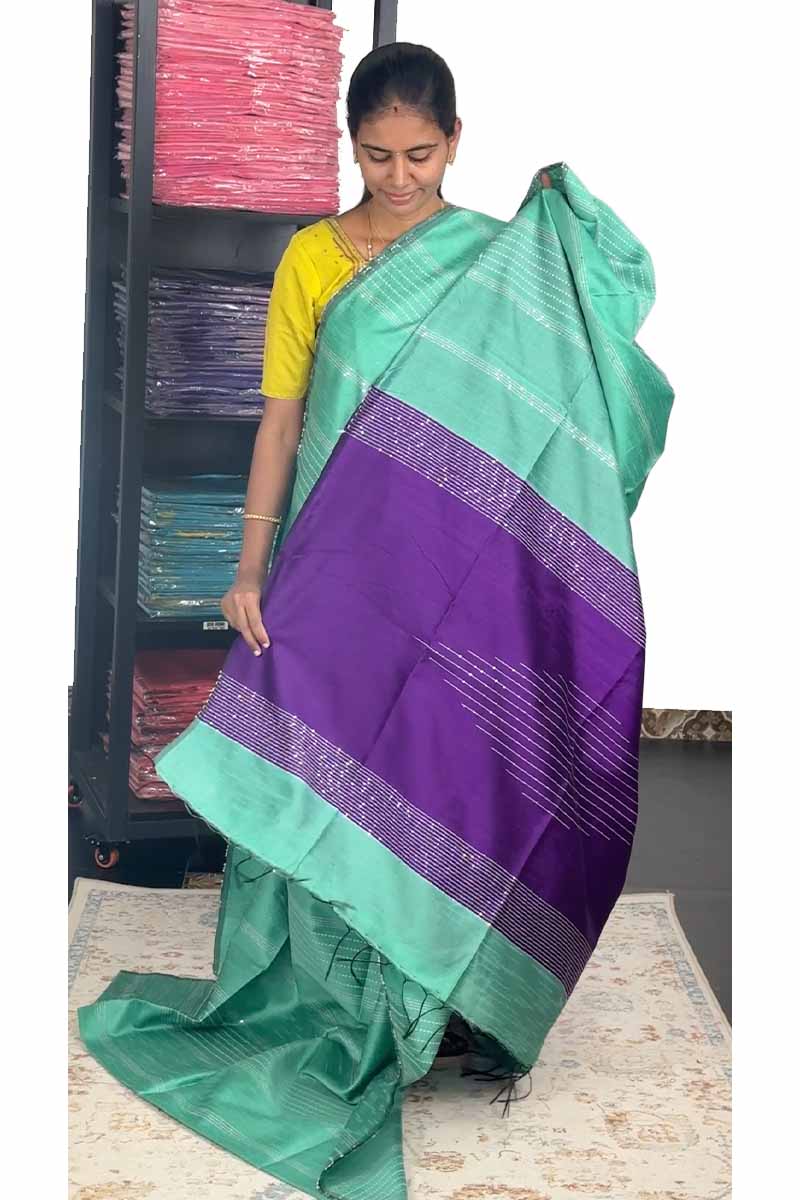 Raw Silk Sarees With Sequin Work | Aqua Mint + Purple