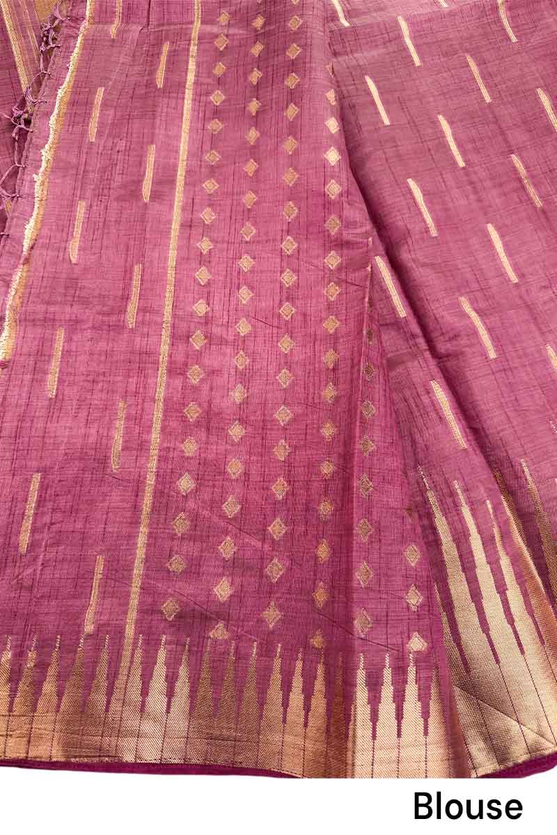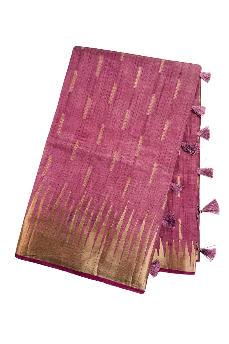 Raw Tussar Saree With Golden Zari | Dusty Rose
