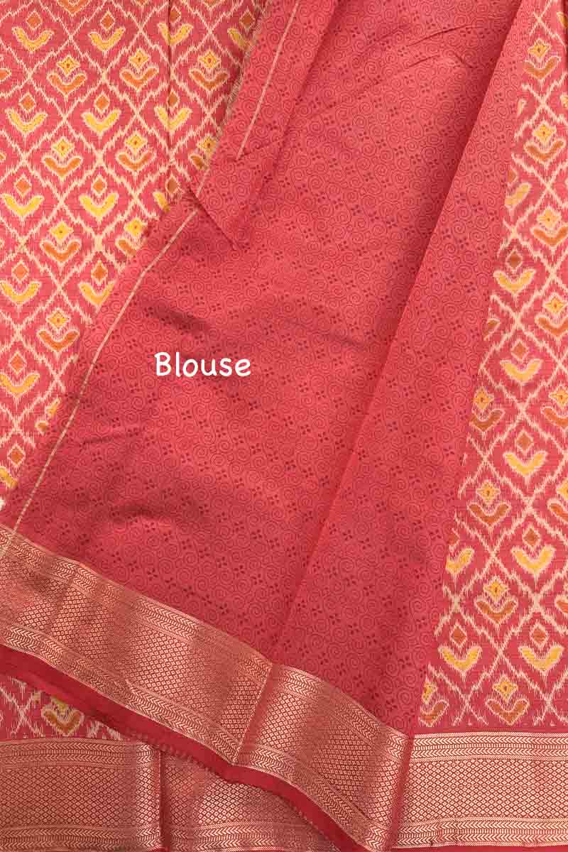 Raw Tussar Saree With Patola Pattern | Tomato Red