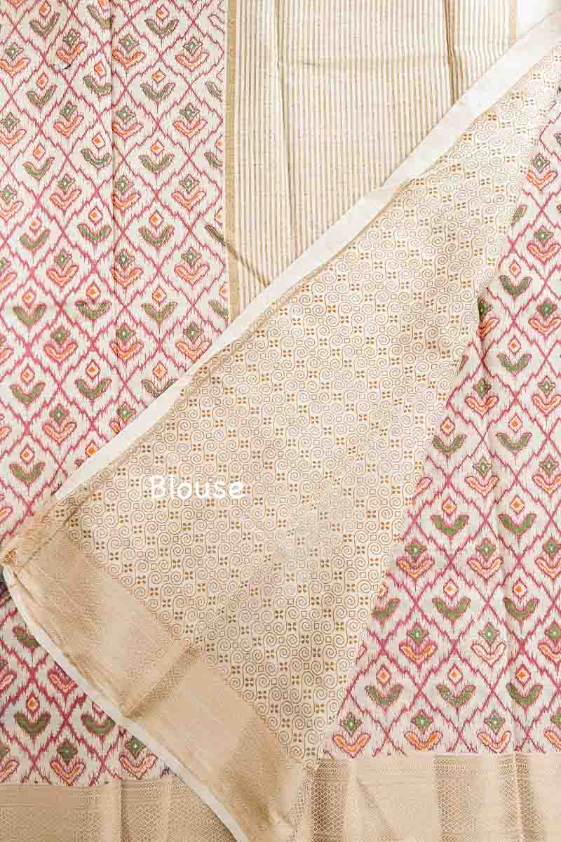 Raw Tussar Saree With Patola Pattern | Cotton White