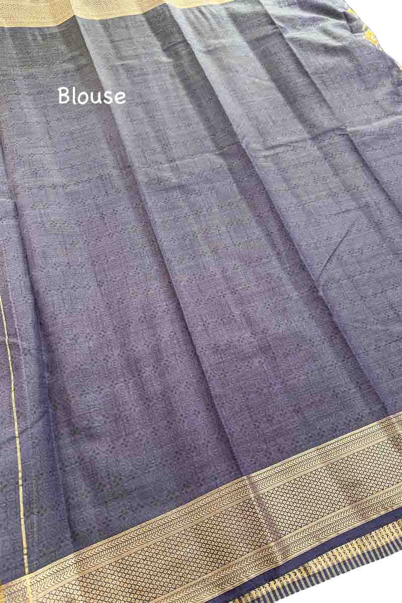 Raw Tussar Saree With Patola Pattern | Berry Blue