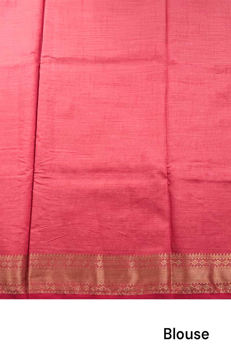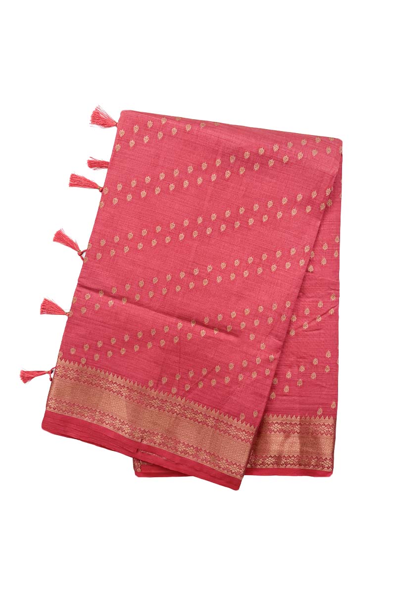 Raw Tussar Silk Saree With Diagonal Butta | Mamey Pink