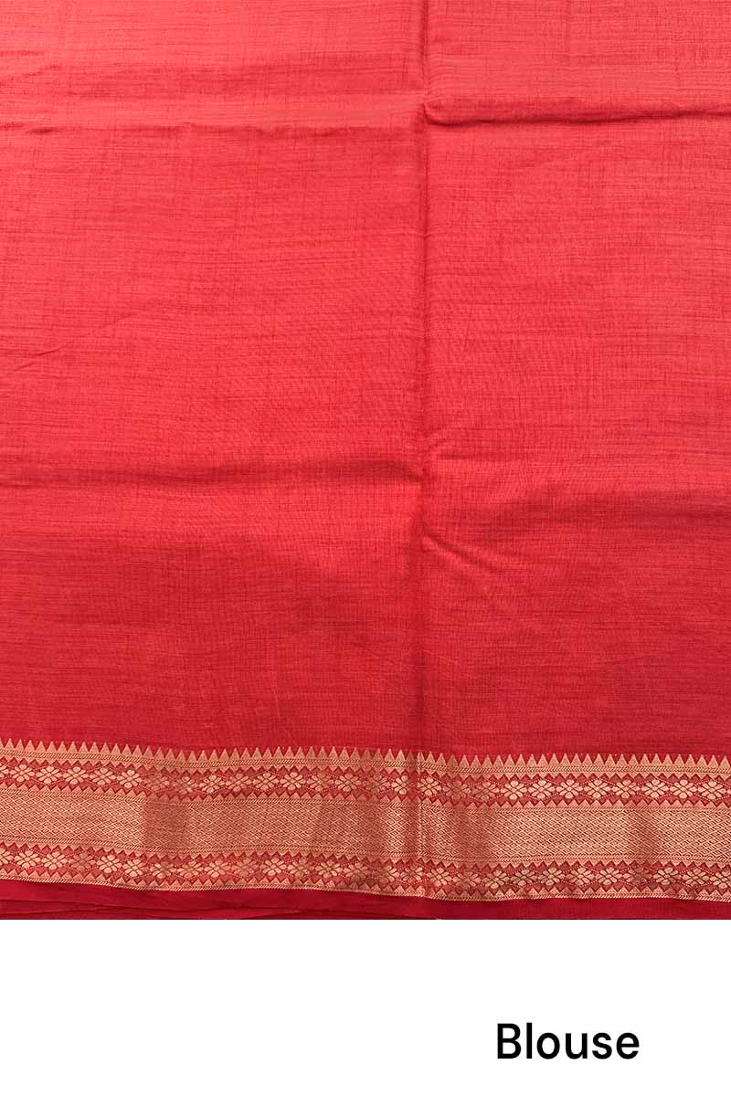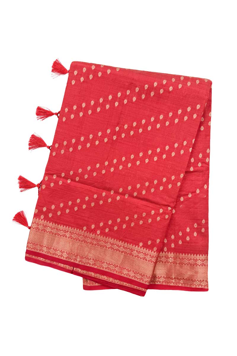 Raw Tussar Silk Saree With Diagonal Butta | Red
