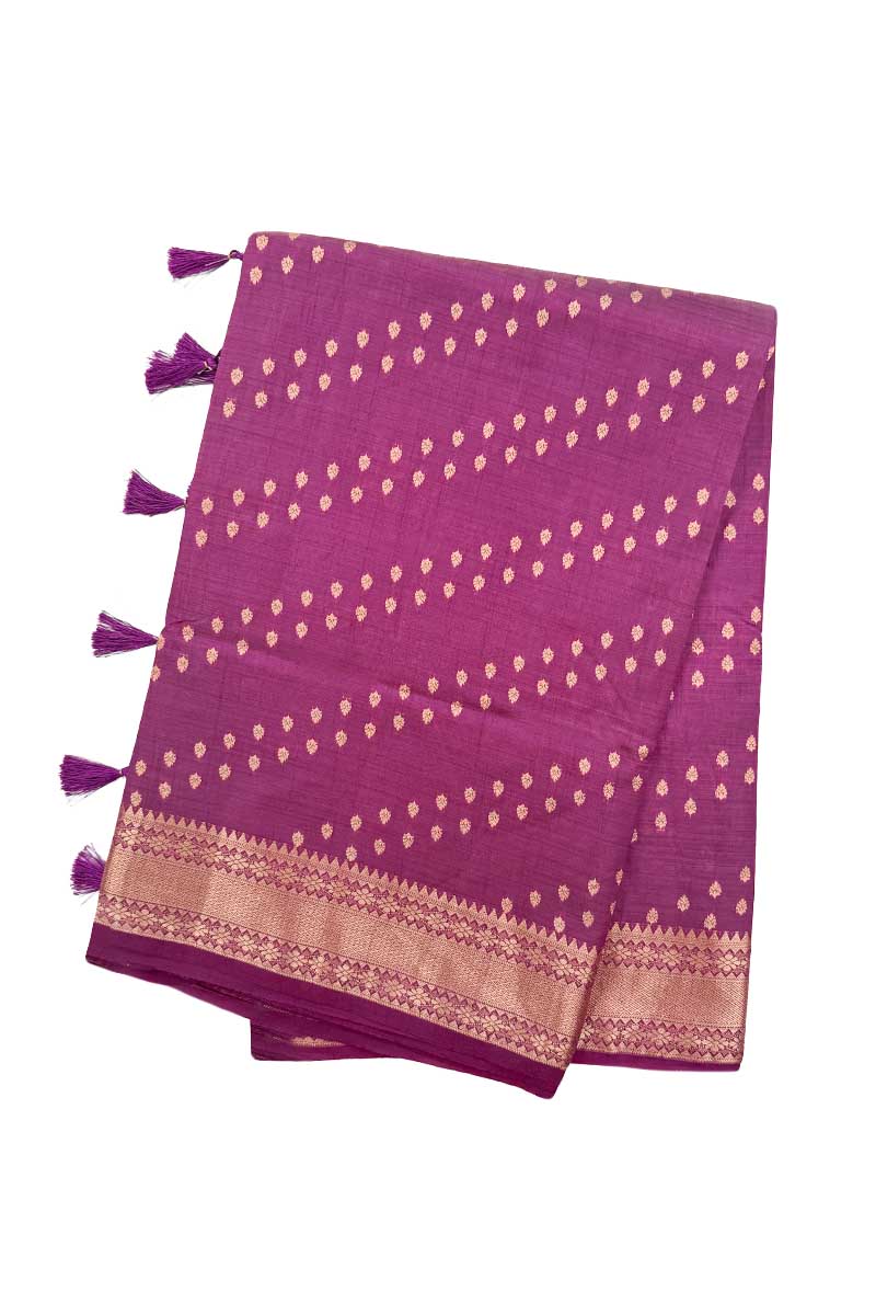 Raw Tussar Silk Saree With Diagonal Butta | Orchid Purple