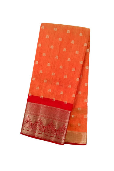 Raw Tussar Silk Saree With Dual shade | Orange + Red