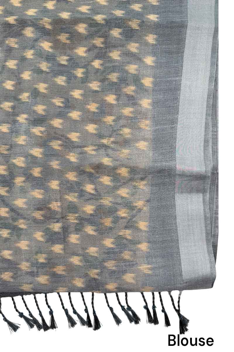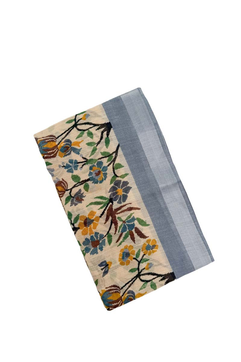Jute Cotton Saree With Blossom Design | State Gray