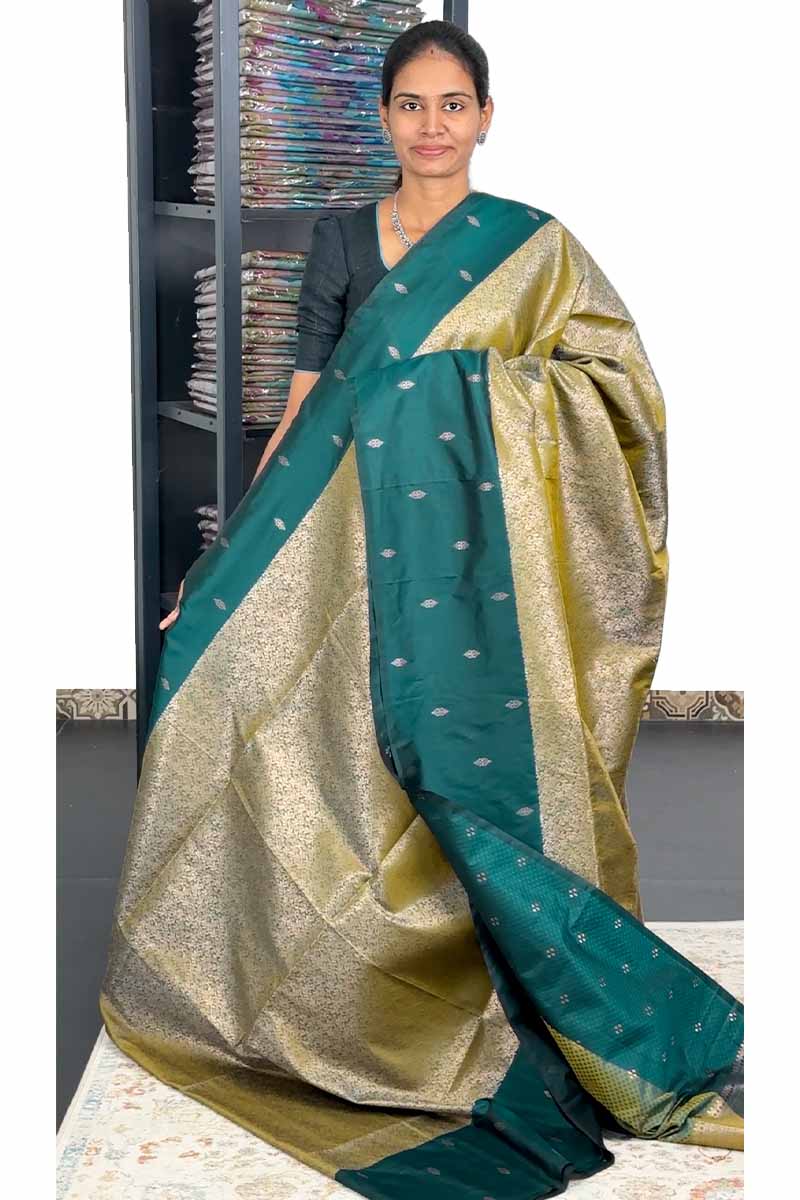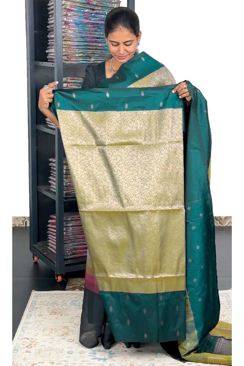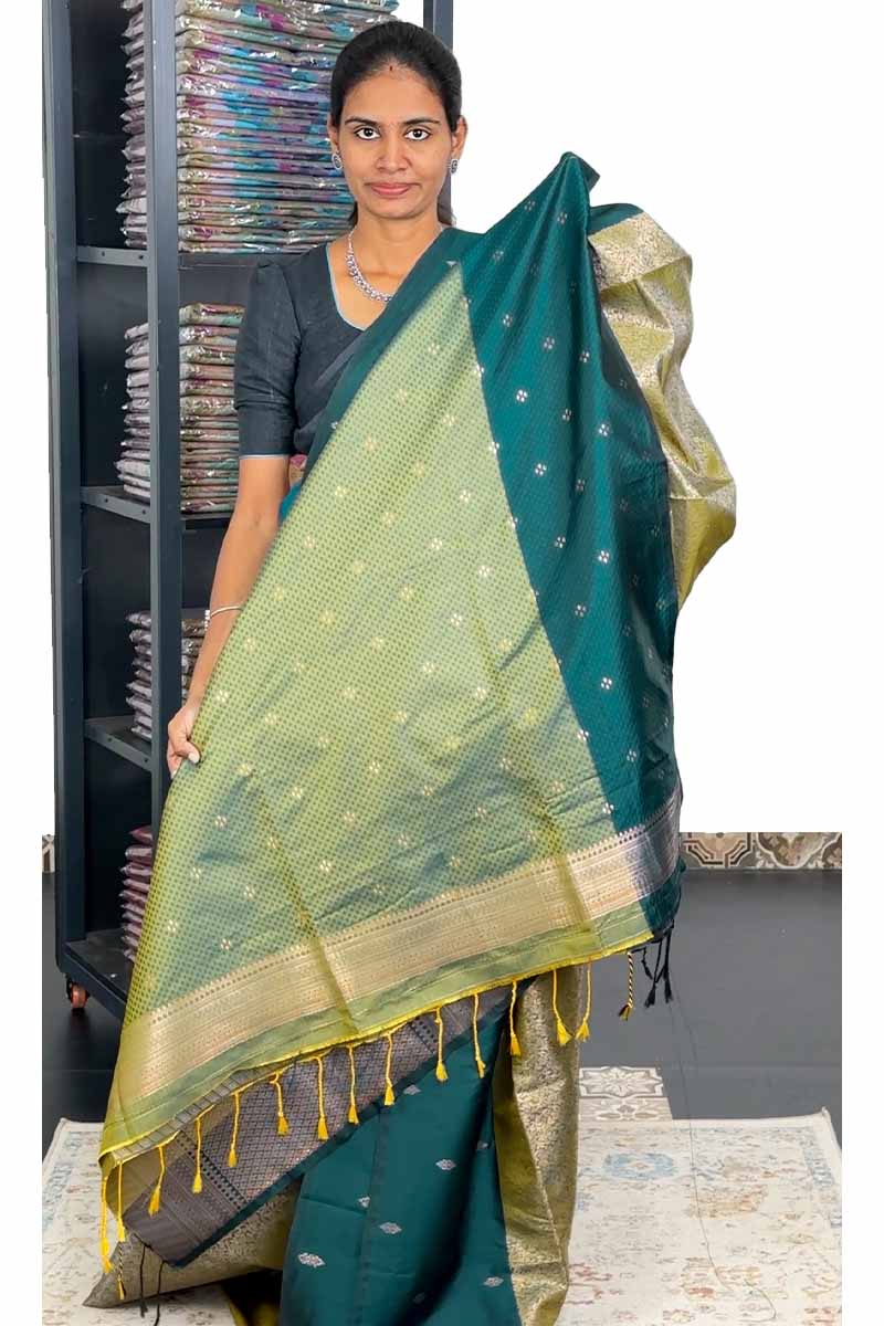 Semi Kanchi Soft Silk Saree With Fancy Border |Olive Green + Bottle Green