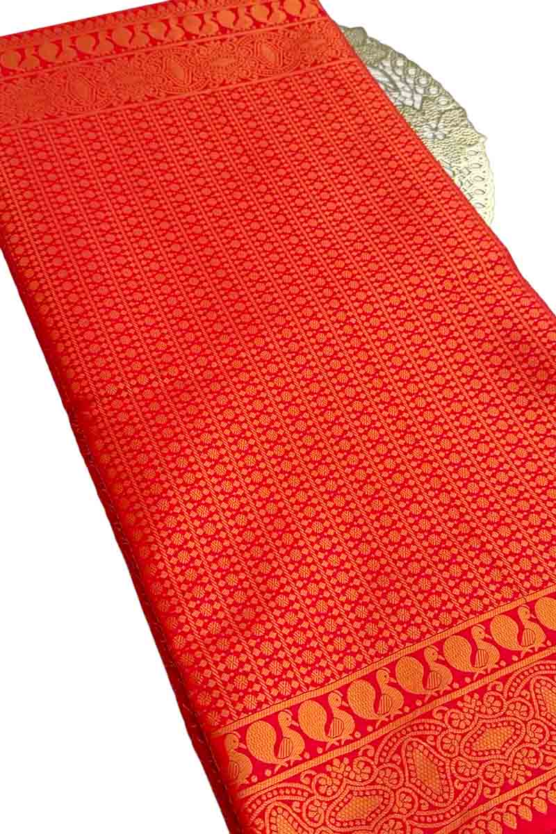 Semi Soft Silk Saree With Abstract Pattern | Pretty Red