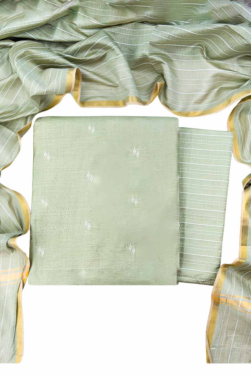 Silk Cotton Salwar Material (Top, Bottom & Dupatta) | Sage Green / Menmai Material 👑