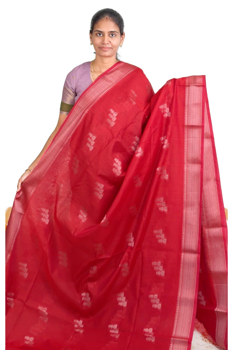 Silk Cotton Saree with mono colour | Pretty Red