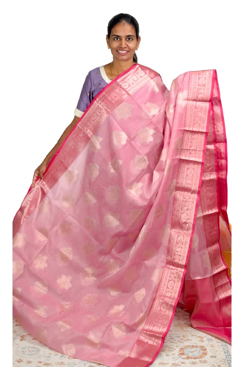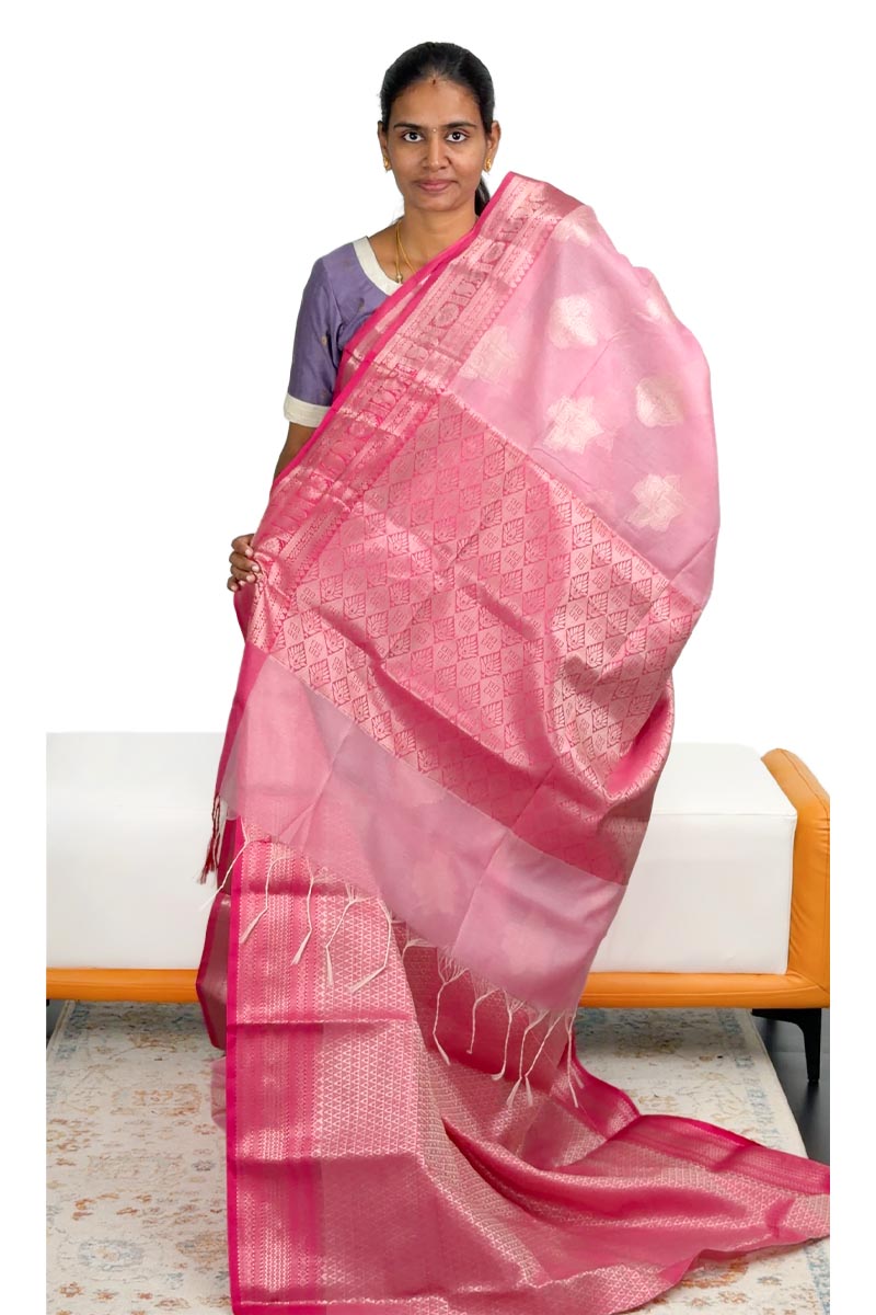 Silk Cotton Saree With Zari Weaving | Candy Pink + Pink