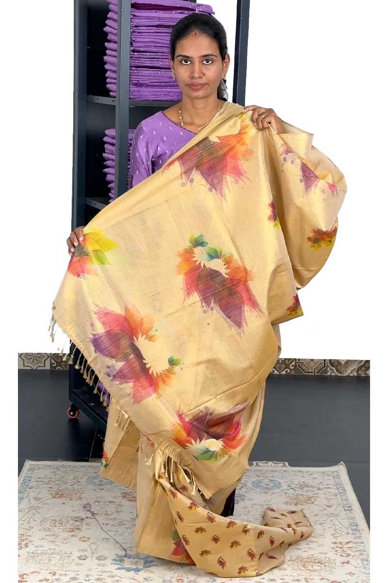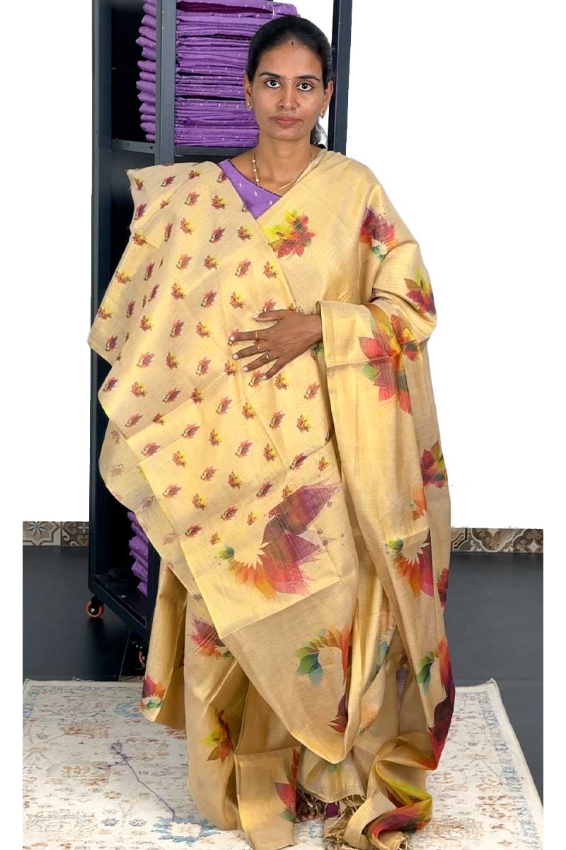 Tissue Linen Sarees with digital prints | Tussar Colour