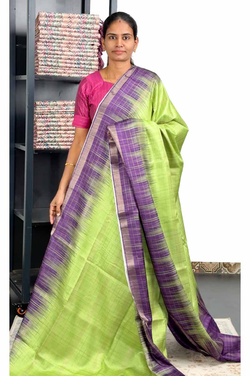 Tussar Silk Saree With Contrast Colours | Fresh Green + Violet