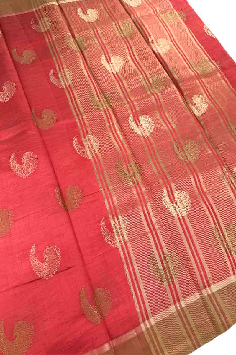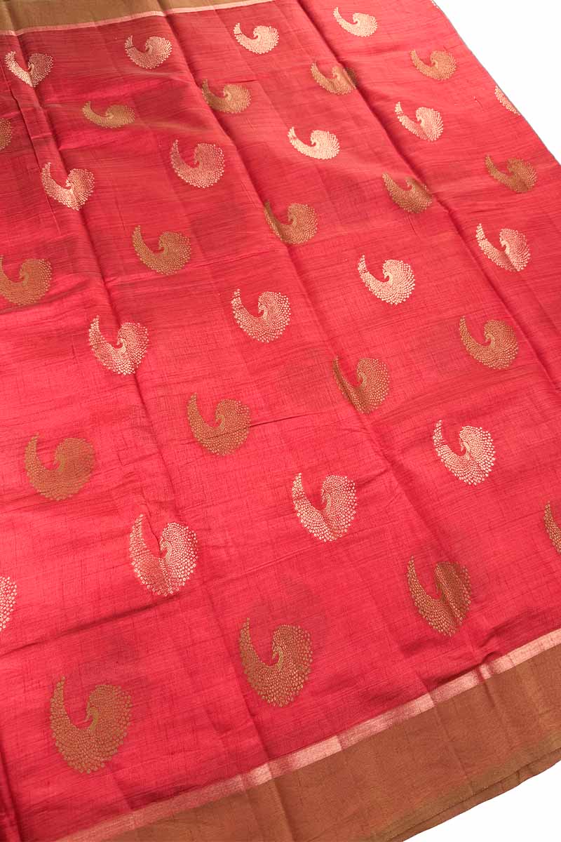 Tussar Silk Saree With Fire Butta | Pretty Red