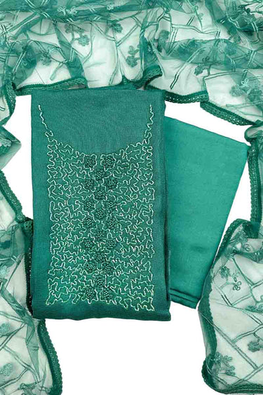 Here is our Medium Teal colour unstitched dress material, which has an ideal fresh look.