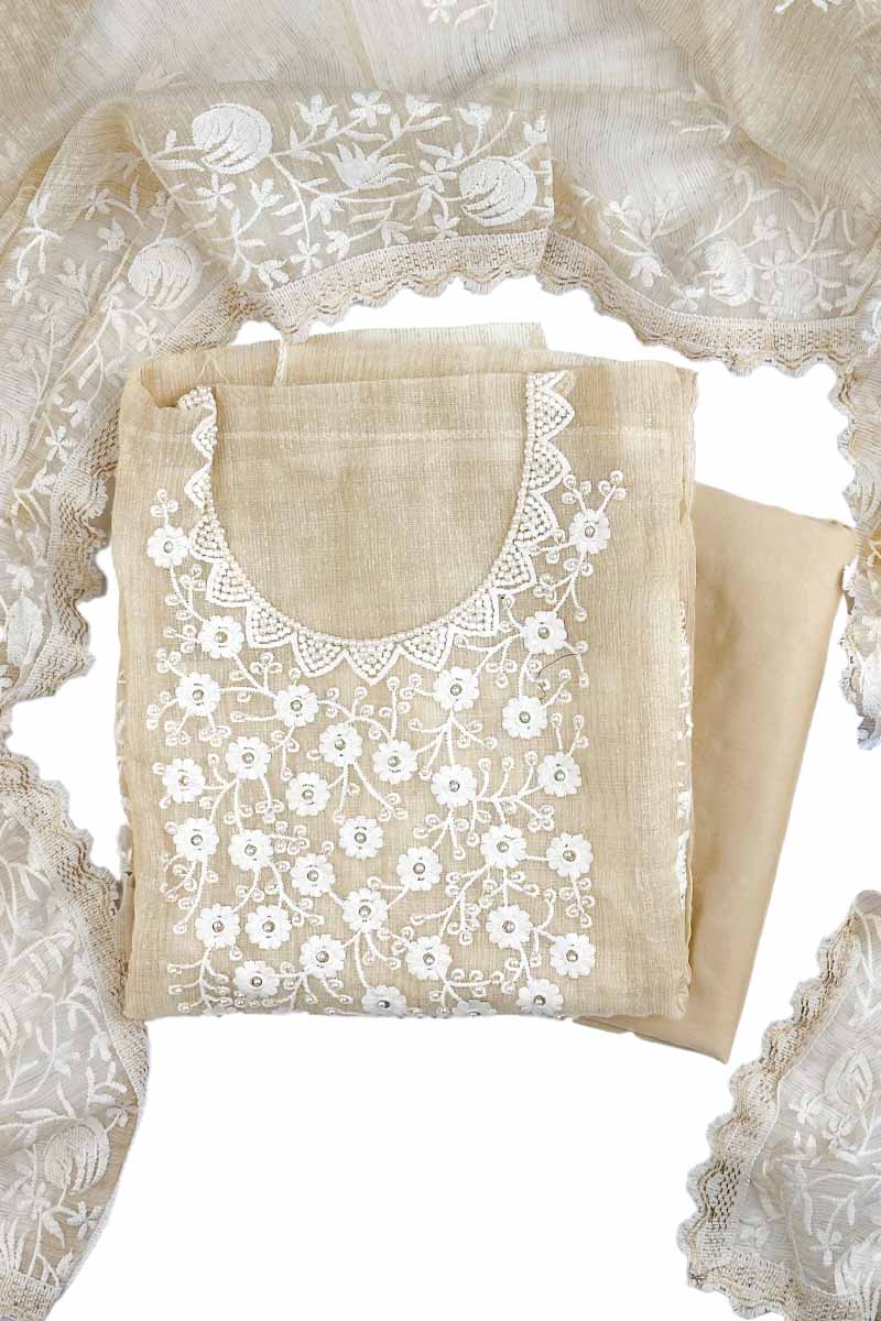 Here is our Tan White colour unstitched dress material, which has an ideal fresh look.
