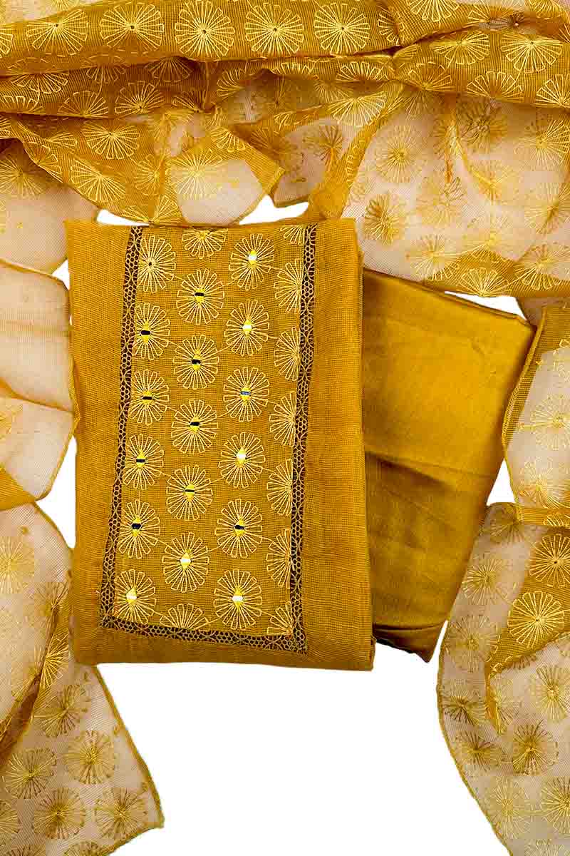 Here is our Mustard Yellow colour unstitched dress material, which has an ideal fresh look.
