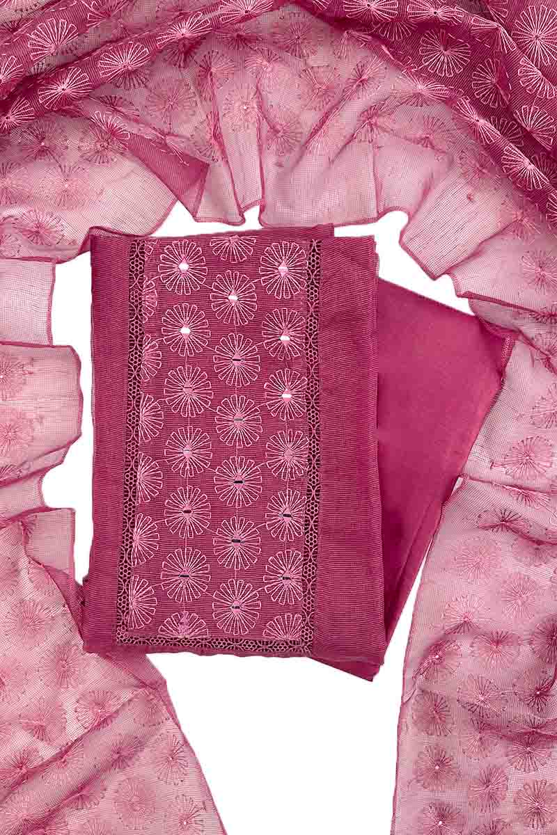 Unstitched Salwar Set - Kota Cotton with Floral Design | Dark Mamey Pink