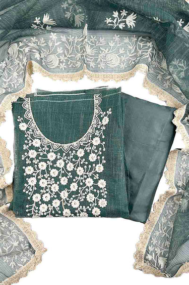 Unstitched Salwar Set - Kota Cotton with Floral Design | Dark Teal Green