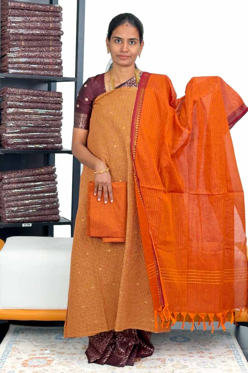 Unstitched Salwar Set - Cotton Material | Rustic Orange