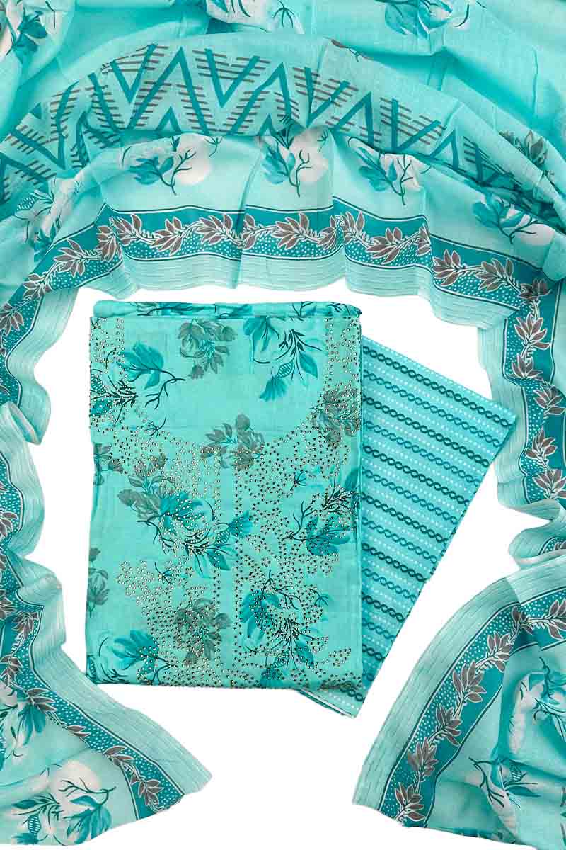 Unstitched Salwar Set - Mul mul Cotton Fabric | Aqua Blue
