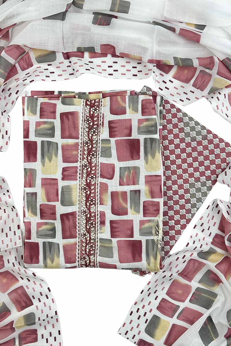 Here is our Light Maroon + Light Forest Green colour unstitched dress material, which has an ideal fresh look.