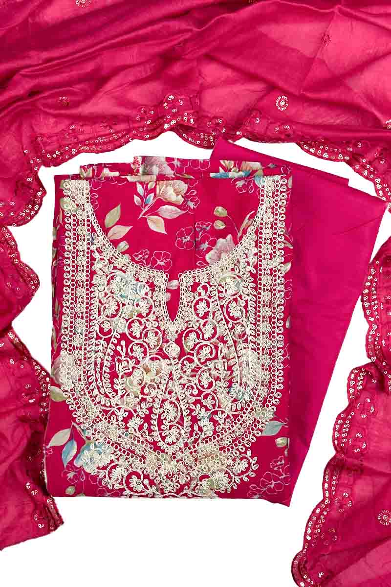 Here is our Hot Pink unstitched dress material, which has an ideal fresh look.