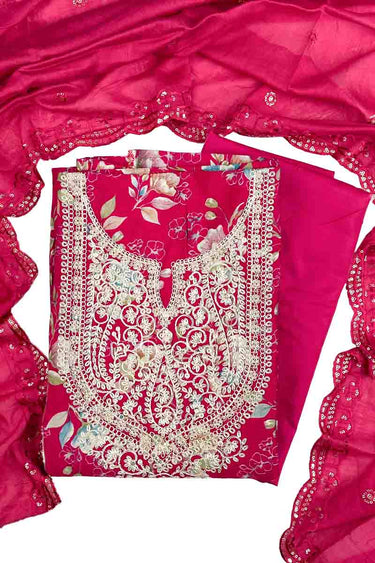 Unstitched Salwar Set -Muslin Silk| Zari Embroidery Design | Hot Pink