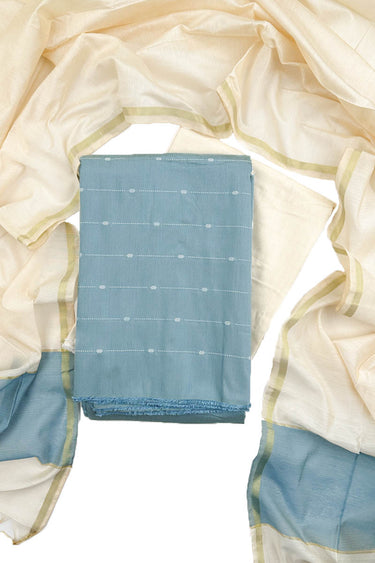 Unstitched Salwar Set - Raw silk slub suit | Powder Blue + White