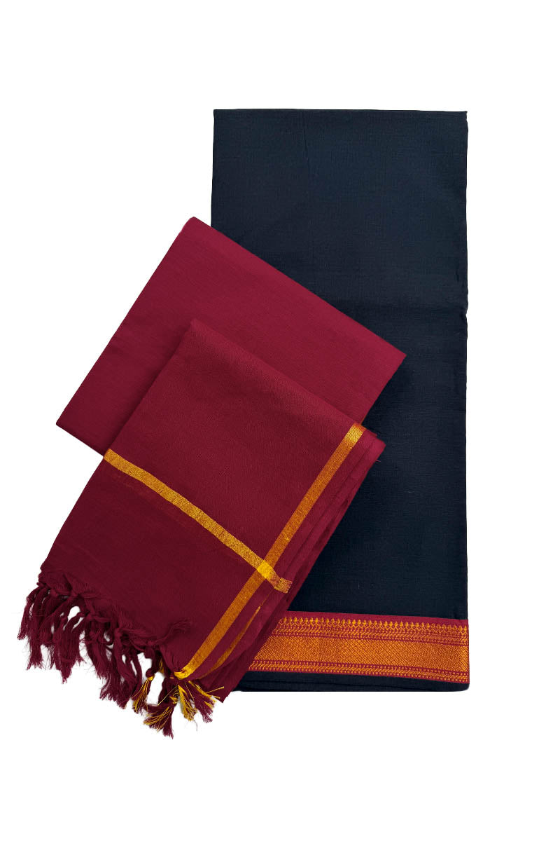 Unstitched Salwar Set - Soft Cotton Fabric | Black + Red