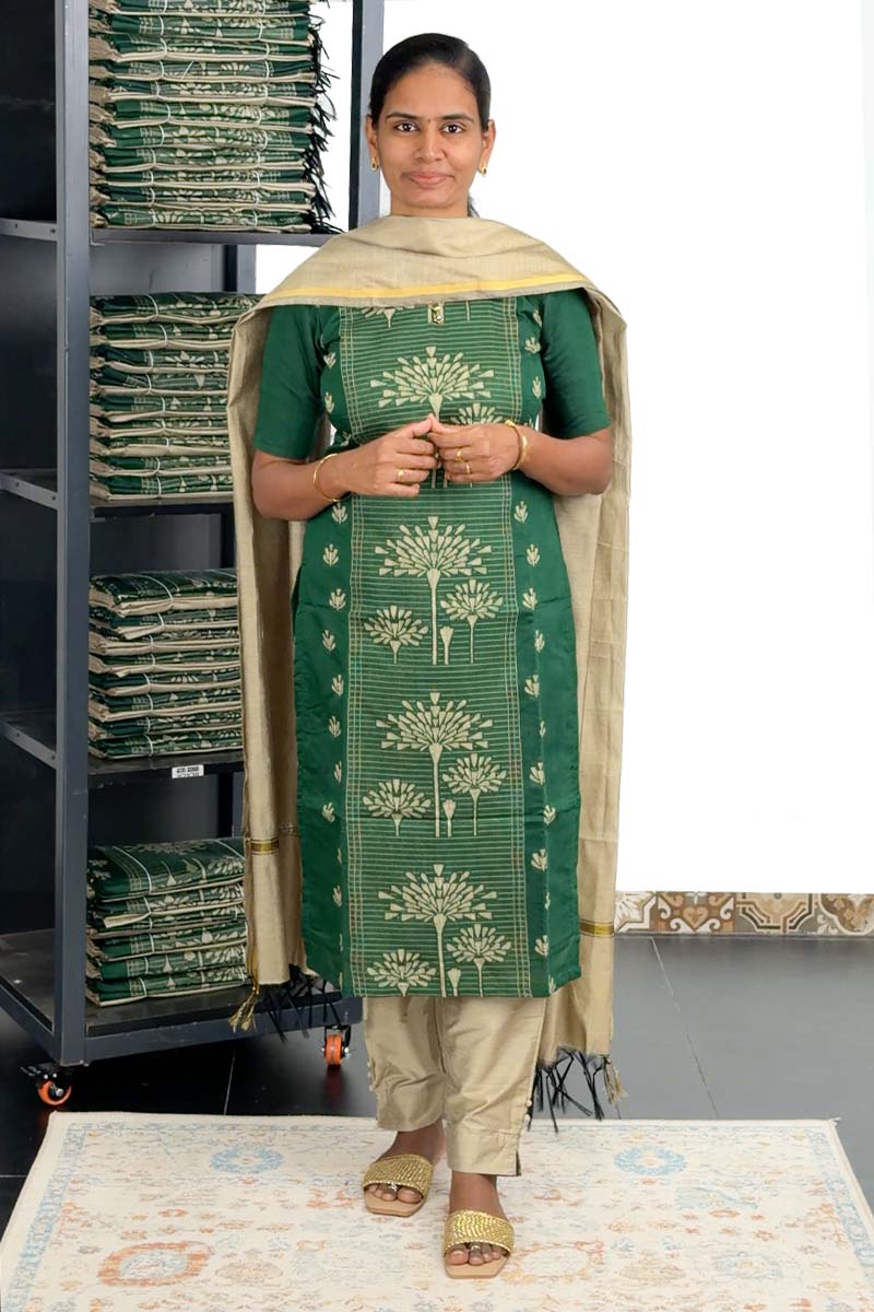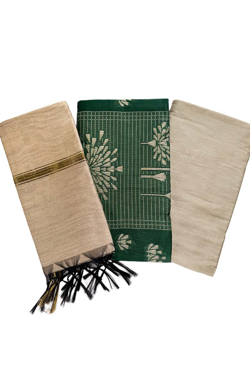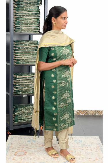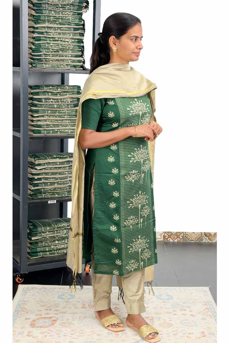 Raw Silk Salwar Material (Top, Bottom & Dupatta) / Forest Green / Menmai Material