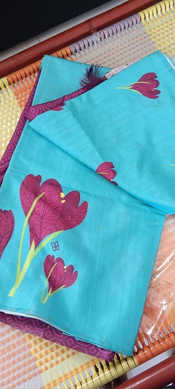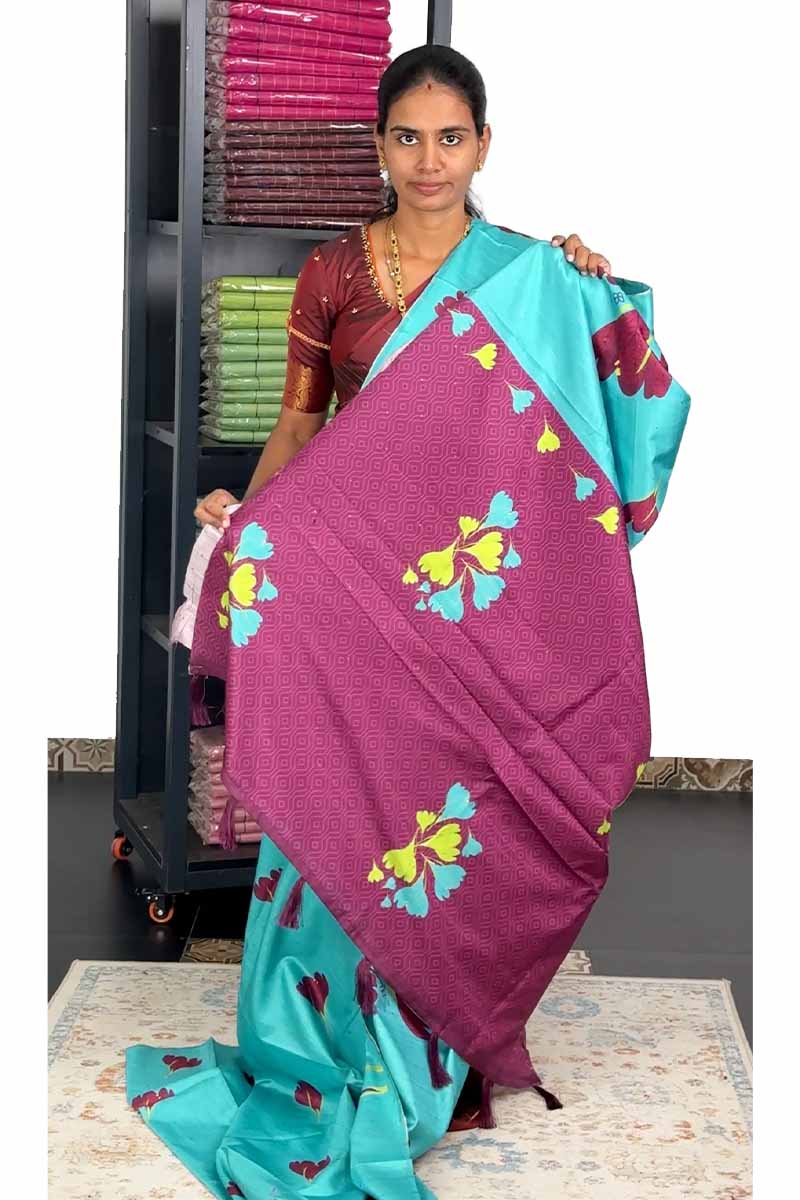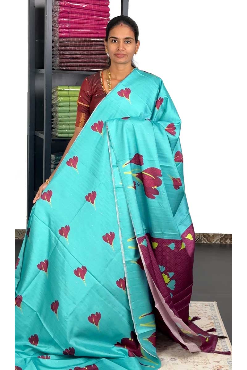 Air Tussar Saree With Flower Motif | Happy Sky+Orchid Purple